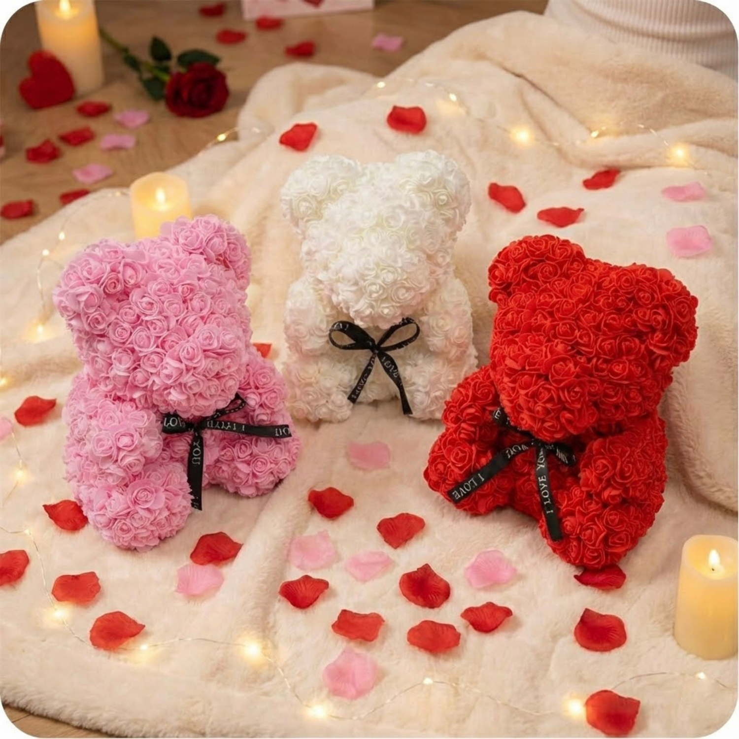 Craquez pour nos nounours fleuris, une attention pleine de tendresse qui traverse le temps. Symbole d’amour et de douceur, ils sont le cadeau idéal pour surprendre, émouvoir et faire fondre le cœur de la personne que vous aimez. Un souvenir unique, à offrir sans attendre.