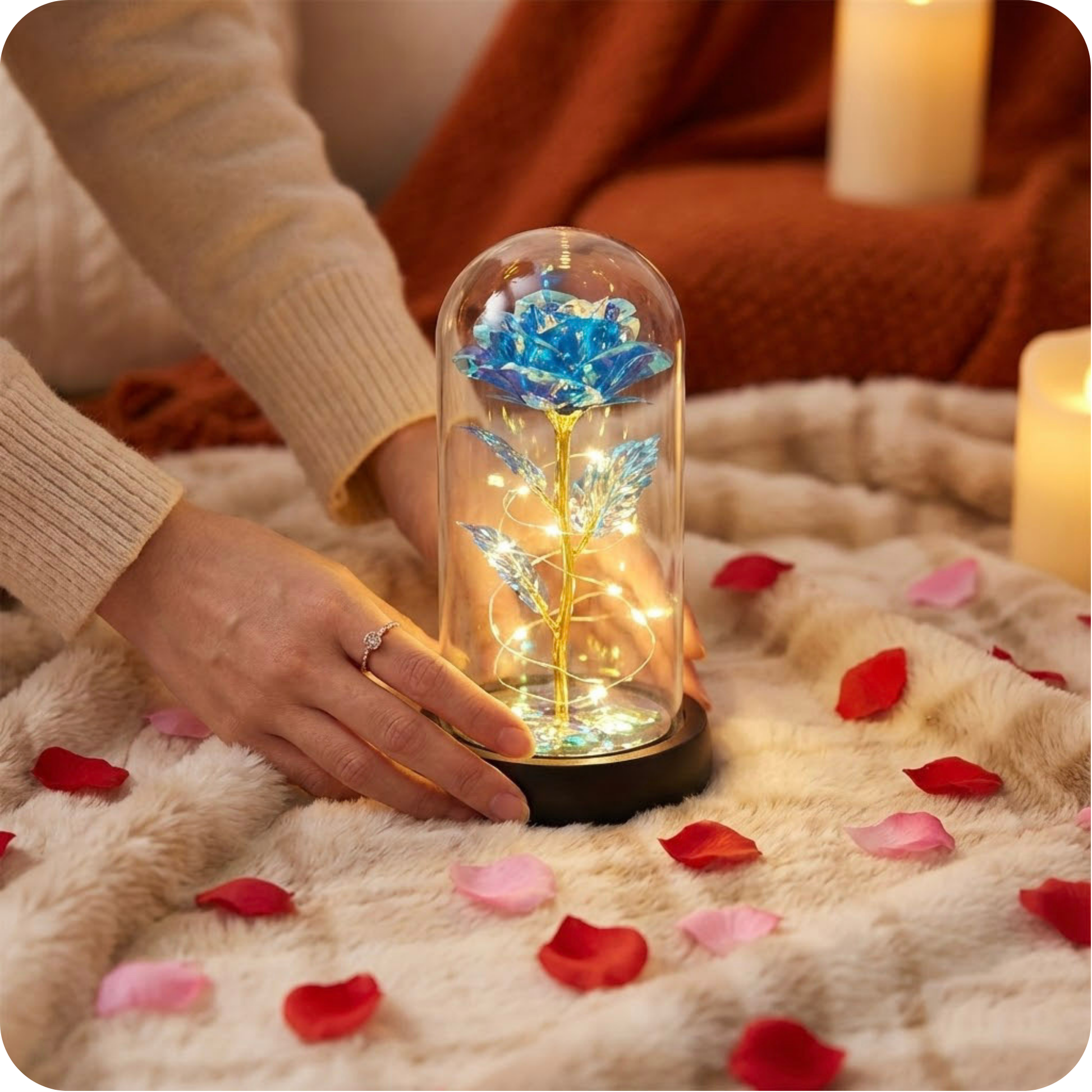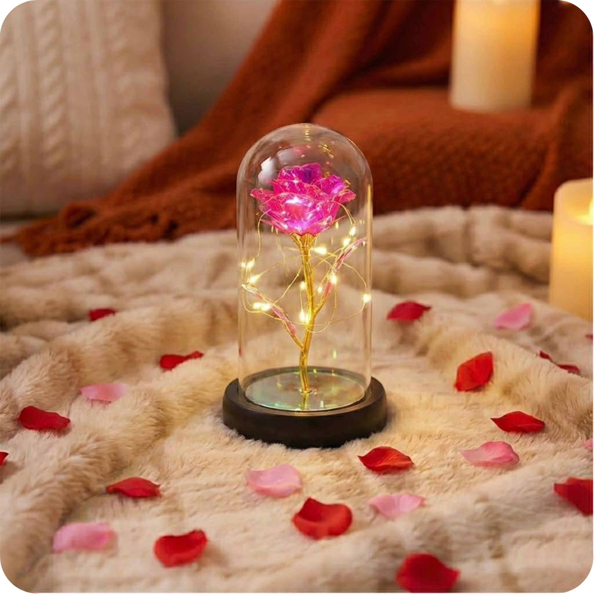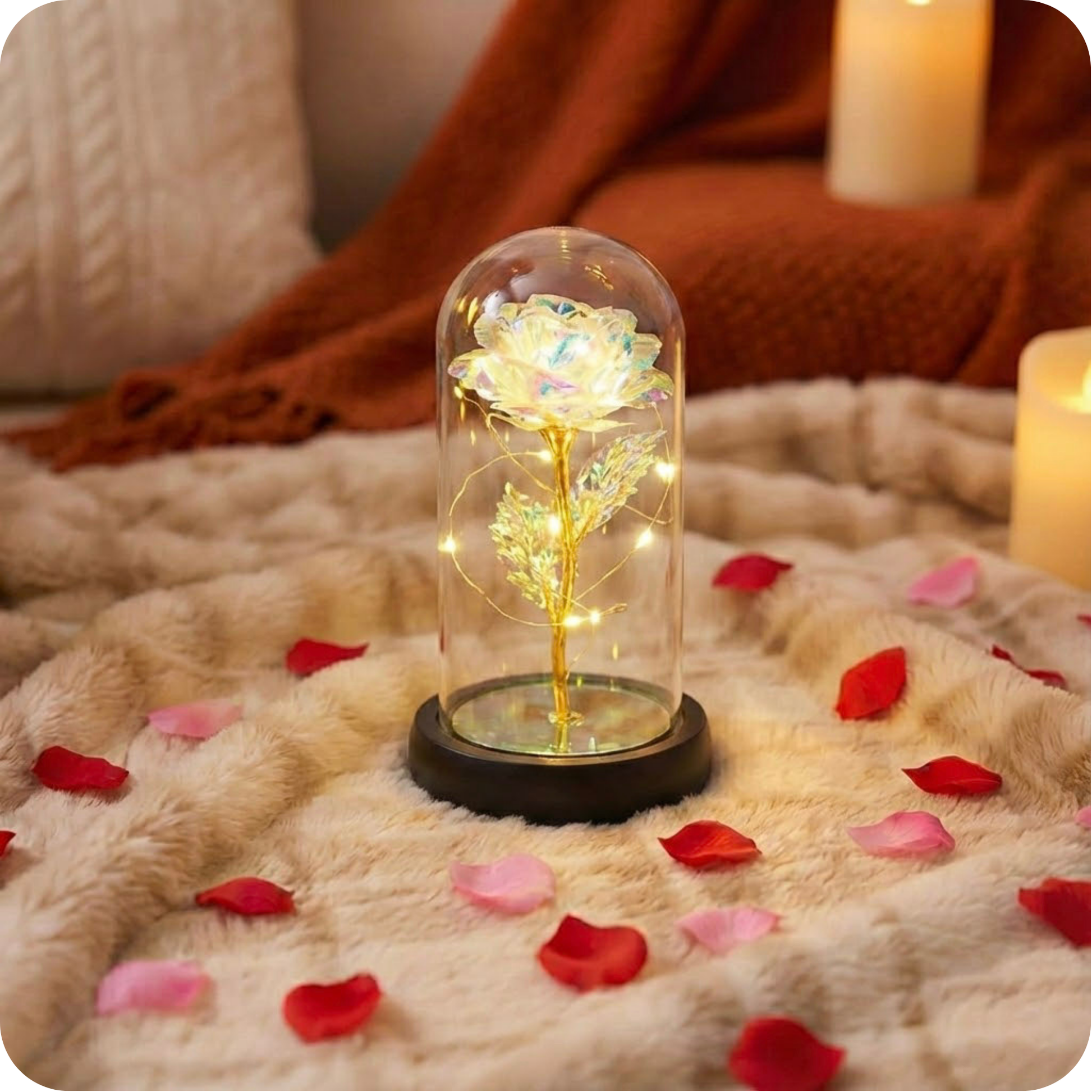 Offrez un symbole d’amour intemporel avec notre rose éternelle cristallisée, une création raffinée qui allie élégance et émotion. Protégée sous une cloche transparente et sublimée par un délicat éclairage lumineux, cette rose ne fane jamais et conserve toute sa beauté au fil du temps.
